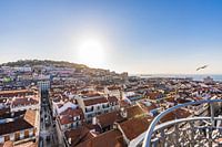 Panoramisch uitzicht over het stadscentrum en de oude stad met het fort Castelo de Sao Jorge in Lissabon, Portugal.