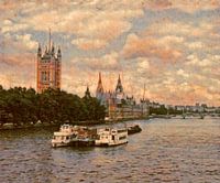 Riviergezicht op het Paleis van Westminster. De parlementsgebouwen in London aan de rivier de Thames. Een prachtige bewerking uit 2015.