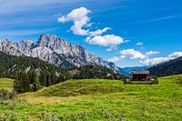 Gezicht op de Litzlalm met hut in Oostenrijk.
