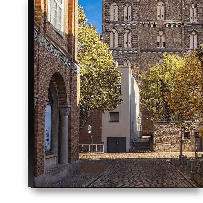 Koop de foto Gezicht op de Mariakerk in de Hanzestad Rostock in de herfst van Rico Ködder op canvas, aluminium dibond, (ingelijste) fotoprint, behang en ArtFrame, op maat geprint in Fine-Art kwaliteit.