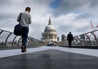 Gezicht op de Millenniumbrug over de Theems met op de achtergrond de koepel van de St. Paul's Cathedral.
