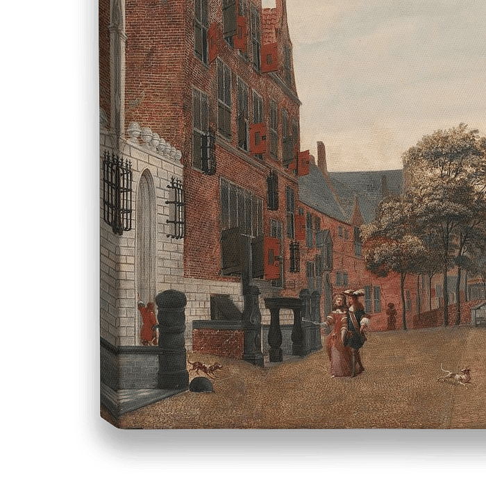 Koop Gezicht op de Oude Delftse Gracht, Delft, Jan van der Heyden als reproductie op canvas, aluminium dibond, (ingelijste) fotoprint, behang en ArtFrame, op maat geprint in Fine-Art kwaliteit.