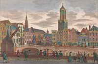 Gezicht op de Vismarkt te Utrecht, gezien richting het Stadhuis en de Domtoren, Georg Balthasar Probst