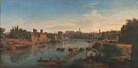 Hier is de Tiber afgebeeld in het laatste deel van zijn loop binnen de stad: op de voorgrond de bevolkte via Marmorata die langs de Aventijnse heuvel loopt en de ruïnes van Rome, waaronder de tempel van Hercules en die van Portunus, naast de haven aan de Tiber. Het middelpunt van de compositie is de haven van Ripa Grande, herkenbaar aan de hellingen en het douanegebouw, naast de tuin en het herenhuis van Pamphilj, beide verwoest voor de bouw van het college van San Michele en de dijk van de Tiber. Op de voorgrond toont de kunstenaar de activiteiten in verband met de rivieroperaties, het aanleggen en lossen van goederen. Het landschap is topografisch correct, zoals blijkt uit een vergelijking met de kaarten van de stad uit de zeventiende en achttiende eeuw, en kan worden aangemerkt als een van de werken waarin de kunstenaar het meest heeft geïnvesteerd.