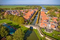 Gezicht op de stad Sloten in Frisland, Nederland met de gracht die door het stadje loopt van bovenaf gezien. Sloten is een van de elf steden van de beroemde Elfstendtocht.
