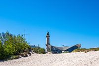 Uitzicht op de vuurtoren met Teepott in Warnemünde.