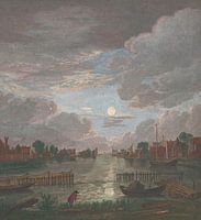 Gezicht op een kanaal in de omgeving van de stad Haarlem bij maanlicht, Pierre François Basan, naar Aert van der Neer, 1753 - 1797