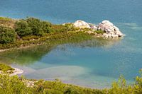 Gezicht op het stuwmeer van Gadoura in het binnenland van het Griekse eiland Rhodos met helder turkoois en blauw water