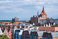 Gezicht op historische gebouwen in de Hanzestad Rostock.