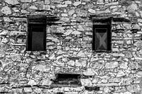 Deze ramen op de muur van een kasteel zien eruit als een gezicht. Doet een beetje denken aan Minecraft.