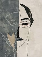 Deze afbeelding toont een abstract gezicht afgebeeld in minimalistische lijnen en subtiele kleuren. De strakke lijnen en geometrische vormen geven het werk een moderne en stijlvolle uitstraling. Het gereduceerde kleurenpalet en de heldere contouren creëren een kalme, bijna meditatieve sfeer die aanzet tot nadenken. Ideaal voor…