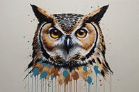 Duik in de hypnotiserende blik van deze prachtige uil, wiens ogen de tijd lijken te bevriezen. De meesterlijke penseelstreken brengen dit majestueuze dier tot leven op het canvas, waarbij de rijke bruinen en subtiele oranjes een verhaal vertellen van mysterie en intelligentie. De verfdruppels onderaan geven een gevoel van beweging, alsof de uil net uit een kunstenaar zijn palet is gestapt. Dit stuk is meer dan een schilderij; het is een gesprek met de natuur, gevangen in het moment net voor de vlucht. De perfecte aanwinst voor elke moderne inrichting, dit werk zal de kijker blijven boeien en inspireren bij elke bezichtiging.