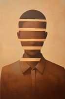 In zachte aardetinten roept het ogenschijnlijk gezichtloze portret een mysterieuze sfeer op. De horizontale lijnen lijken de kijker uit te nodigen om na te denken over wat er achter de façade verborgen zou kunnen zitten. Dit kunstwerk is ideaal voor een woonkamer, geeft de ruimte een bedachtzame elegantie en stimuleert diepgaande gesprekken.