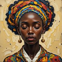 Koop dit portret Ghana Star - Afrikaanse vrouw schilderij 1.1 van ComfortQ op canvas, aluminium dibond, (ingelijste) fotoprint, behang en ArtFrame, op maat geprint in Fine-Art kwaliteit.