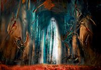 Fantasie kunst met een spook in een absurd surrealistisch bos