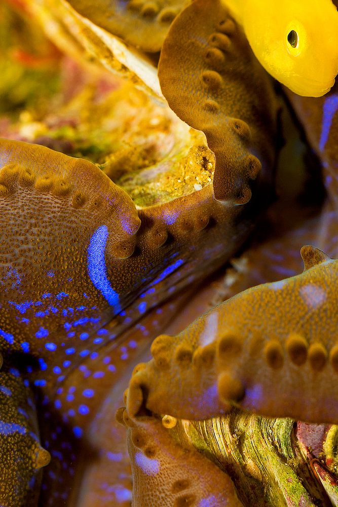 Giant clam (Tridacna maxima) (Okinawae gobiodon) with Yellow coral goby