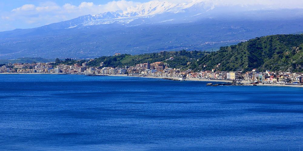 Blick auf Giardini Naxos und den Ätna. Sizilien, Italien. Frühjahr 2015