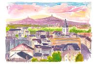 Over ‘Giessen Hessen Duitsland met zonsondergang over stad en heuvels’ van Markus Bleichner