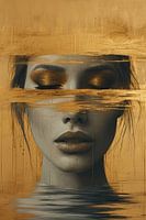 Details: vrouw, portret, goud, modern, stilte, mysterie, blik, kunst, canvas, schilderij