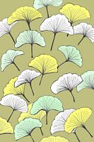 Ginkgo biloba blaadjes vormen een onregelmatig patroon op een donkergroene ondergrond. De kleurstelling is wit, mintgroen en citroengeel op een legergroene ondergrond.