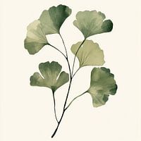 Stijlvolle botanische print van een ginkgo blad in zachte olijfgroene tinten. Minimalistisch, tijdloos en perfect als rustgevende wanddecoratie in elk interieur.