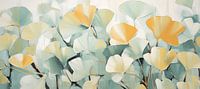 Ginkgo Ginkgo's - De Ginkgo's waaiervormige bladeren creëren een intrigerend patroon dat de kijker uitnodigt om dieper in het kunstwerk te duiken. Deze bladeren symboliseren groei en ontwikkeling, waardoor ze een boodschap van persoonlijke vooruitgang en optimisme uitstralen. Bovendien draagt hun unieke vorm bij aan een gevoel van originaliteit en creativiteit in de ruimte. De rustgevende vormen kunnen dienen als een visuele ontsnapping in een drukke woon- of slaapkamer. De Ginkgo in de kunst is niet alleen een esthetisch element maar ook een bron van inspiratie en reflectie.