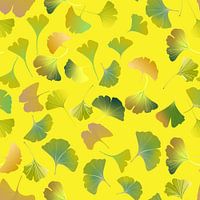 Grafisch werk geïnspireerd op de zelfgekweekte ginkgo's voor het atelier.
