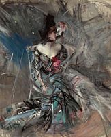 Giovanni Boldini (1842-1931) was een Italiaanse schilder die vooral bekend is om zijn elegante portretten van de hogere kringen aan het einde van de 19e en het begin van de 20e eeuw. Hij woonde en werkte vele jaren in Parijs, waar hij zich vestigde als een veelgevraagd portretschilder. Boldini's werken worden gekenmerkt door dynamische penseelstreken, gestileerde elegantie en een zekere theatrale lichtheid. Hij werd vaak de "schilder van mooie vrouwen" genoemd en wordt beschouwd als een belangrijke vertegenwoordiger van de Belle Époque stijl.
