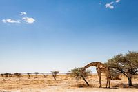 Giraf eet van een acacia in woestijnlandschap van Simone Janssen