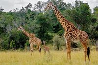 Koop de foto Giraffe familie van Peter Michel als print op canvas, aluminium dibond, (ingelijste) fotoprint, behang en ArtFrame. Voor jou op maat geprint in Fine-Art kwaliteit.