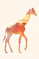 Het silhouet van een giraffe ontvouwt zich in zachte pasteltinten, afgewisseld met warme kleuren van zonsondergangen en schilderachtige landschappen. Dit harmonieuze samenspel verleidt je om te dromen en geeft je woonkamer een exotisch tintje. Perfect om een vredig toevluchtsoord te creëren dat uitnodigt om te blijven hangen.