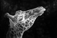 Giraffe geniet van het ochtendzonnetje op een koude dag.