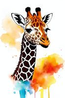 "Giraffe kleurspel" is een spetterend aquarel kunstwerk waar de zachtheid en speelse charme van een giraffe tot leven komen door een explosie van kleuren. De losse, vloeiende waterverftechniek creëert een dromerig effect waarbij de kleuren oranje, geel, blauw, rood en wit in elkaar overlopen en de grenzen van de giraffe's silhouet doen…