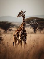 Koop de foto Giraffe op de savanne V1 van drdigitaldesign op canvas, aluminium dibond, (ingelijste) fotoprint, behang en ArtFrame, op maat geprint in Fine-Art kwaliteit.