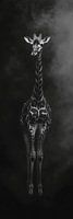 Een majestueus schepsel rijst op uit de schaduw - het delicate silhouet van een giraffe, betoverend met zijn elegante houding en mysterieuze achtergrond. Het monochrome kleurenpalet voegt een vleugje mystiek toe aan het kunstwerk. Perfect voor in de woonkamer, creëert een sfeervolle verbinding met de natuur en trekt bewonderende blikken…