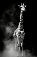 Elegantie in zwart-wit: een majestueuze giraffe staat trots in de mist en trekt ieders aandacht. Zijn unieke patronen en sierlijke houding geven elke kamer een vleugje exotisme en rust. Dit kunstwerk is perfect voor de woonkamer, waar het een gesprek kan stimuleren en bewondering kan opwekken.