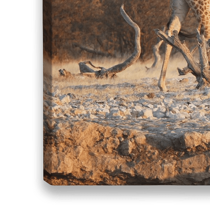 Koop de foto Giraffen bij waterput in Afrika van Jeffrey Groeneweg op canvas, aluminium dibond, (ingelijste) fotoprint, behang en ArtFrame, op maat geprint in Fine-Art kwaliteit.