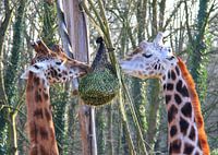 De giraffen (Giraffa) zijn een geslacht van evenhoevige zoogdieren uit de familie Giraffidae waarvan de vertegenwoordigers voorkomen in Afrika. Ze zijn bekend om hun lange nek en het vlekkenpatroon op hun vacht. Samen met hun nauwste verwant, de veel kleinere okapi, die een kastanjebruin lichaam, gestreepte poten en een gevlekte kop heeft, vormen de giraffen de familie Giraffidae. bron wikipedia