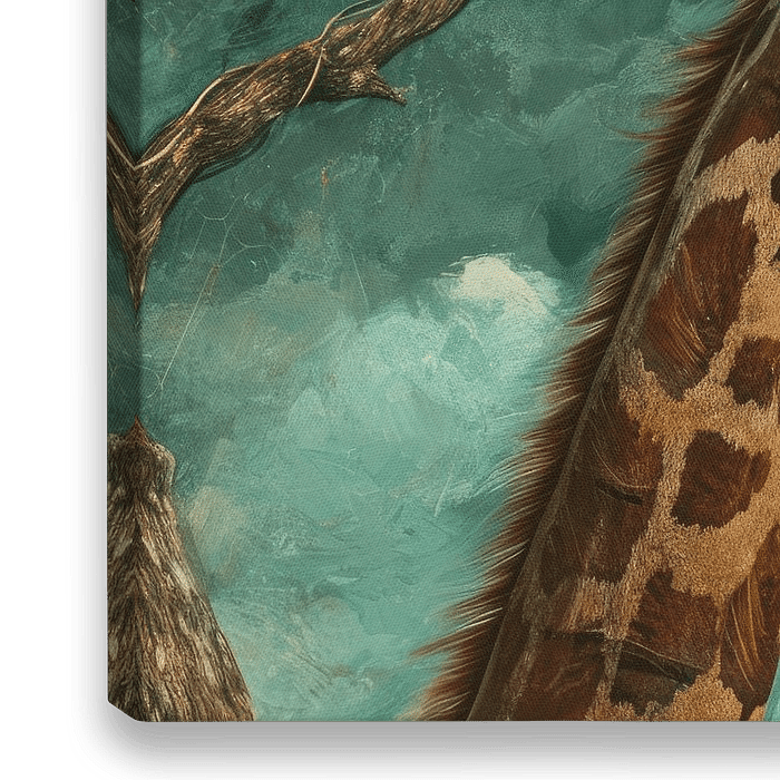 Deze kunstzinnige afbeelding toont een giraffe te midden van een dromerig landschap, waar de grenzen van realiteit en fantasie vervagen. De giraffe, met zijn kenmerkende lange nek en gevlekte vacht, lijkt te transformeren in een boom waaruit kleine vogels ontspringen, alsof ze gedachten of dromen zijn die de vrije loop krijgen. De…