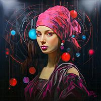 Rene van den Berg, een innovatieve digitale kunstenaar, brengt een frisse kijk op "Meisje met de parel" van Vermeer. In zijn interpretatie worden de traditionele kleuren van het origineel vervangen door levendige tinten magenta en roze. Het gezicht van het meisje is te midden van kleurrijke ronde vormen geplaatst, die als zeepbellen of…