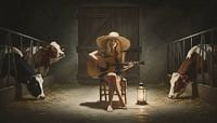 Koop dit digital art kunstwerk Gitaar spelen tussen de koeien van Emiel de Lange als reproductie op canvas, aluminium dibond, (ingelijste) fotoprint, behang en ArtFrame, op maat geprint in Fine-Art kwaliteit.