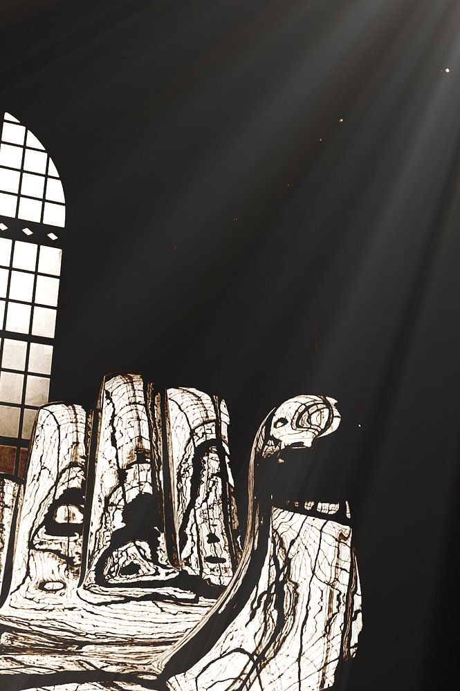 Deze heb ik genomen in het station van Antwerpen,waar een schitterend verchroomd beeld stond,de lichtstralen heb ik zelf toegevoegd ,het geeft dan wat meer zeggingskracht naar mijn mening.