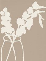 Koop dit abstracte kunstwerk Gladiolen in vaas. Witte en taupe botanische kunst. van Dina Dankers op canvas, aluminium dibond, (ingelijste) fotoprint, behang en ArtFrame, op maat geprint in Fine-Art kwaliteit.