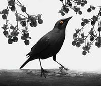 In zwart/wit met het gele oog dat zo extra de aandacht trekt.