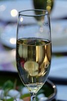 Ultiem zomergevoel, tafel vol hapjes met een glas bubbles.