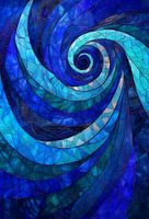 Het gebrandgeschilderde glaskunstwerk betovert de toeschouwer met zijn elegante spiraalvorm, die zich als een hypnotiserende dans ontvouwt. De diepe blauwtinten en zachte azuuraccenten smelten samen in een weergave van serene schoonheid, waarbij de kleuren naadloos in elkaar overlopen als de golven van een rustige oceaan. Elk penseelstreekje lijkt te dansen op het glas, waardoor een gevoel van beweging en leven ontstaat binnen de statige structuur van het kunstwerk. Het spel van licht en schaduw creëert een betoverend spel dat de ziel van de kijker raakt en hen meevoert naar een wereld van diepe contemplatie en vredige sereniteit.