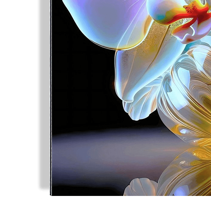 Dit digitale schilderij is ideaal voor moderne interieurs, brengt een geraffineerde florale toets in elke kamer en is aantrekkelijk voor verzamelaars die de combinatie van botanische schoonheid en digitale kunst waarderen.