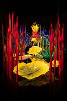 Deze foto is gemaakt in het Chihuly Garden and Glass museum in Seattle Washington USA. Het betreft een opstelling met daarin meerdere glaskunst voorwerpen ontworpen door Dale Chihuly, een Amerikaanse glas kunstenaar. Het is een kleurrijke foto met veel verschillende vormen die een warme uitstraling heeft. Deze foto fleurt ieder…