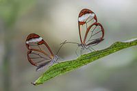 Glasvleugel vlinder (Greta oto) op een blad. Bokeh achtergrond. Vlinder met doorzichtige vleugels op een blad. Tropische vlinder in de zomer.