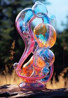Een kleurrijk glas sculptuur met abstracte en ronde vormen. Door de overgang van de verschillende kleuren krijg je mooie diepte.
